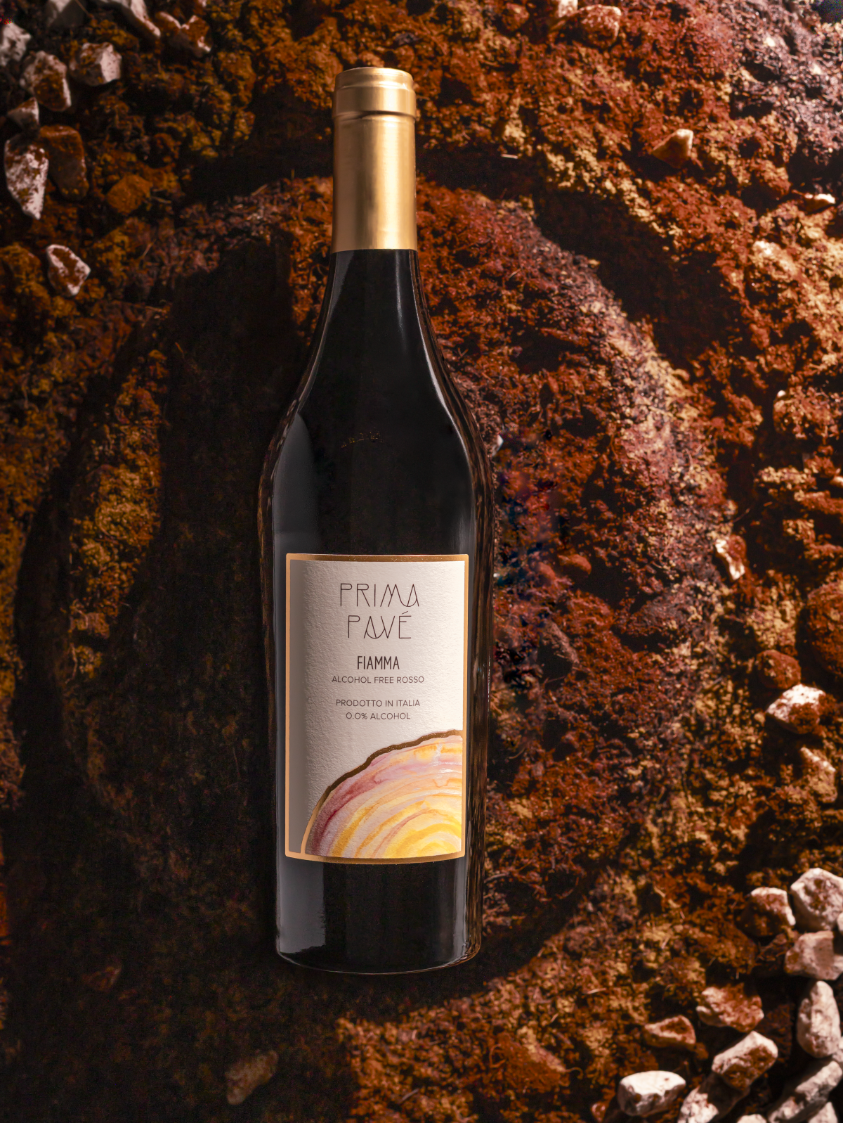 Prima Pavé Fiamma Bottle with glass and flavor profiles