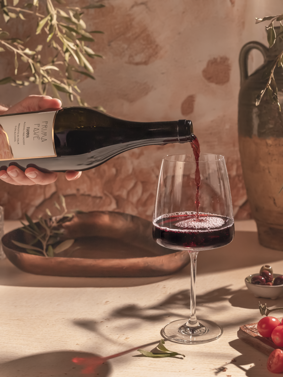 Our non-alcoholic red is a groundbreaking expression crafted to be bright, balanced and quietly bold. Handcrafted in Southern Italy from an ancient grape varietal only grown in Puglia, it is an exceptional expression made without artificial flavors, colors or added sugar. An elevated bottle to pour at the table, a sublime sip for cozy nights by the fire while also being versatile as a chillable red during the summer for outdoor barbecues.